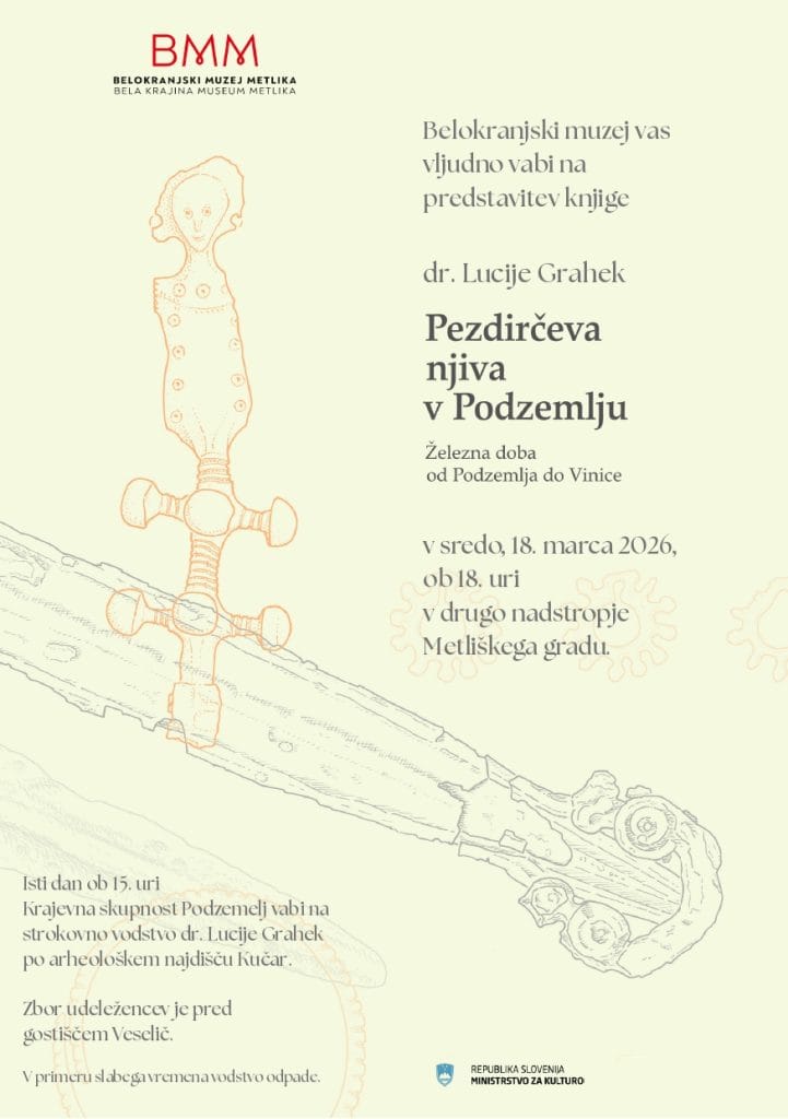 Vabljeni na predstavitev knjige dr. Lucije Grahek: »Pezdirčeva njiva v Podzemlju – Železna doba od Podzemlja do Vinice«, ki bo v sredo, 18. marca ob 18.00 na metliškem gradu.